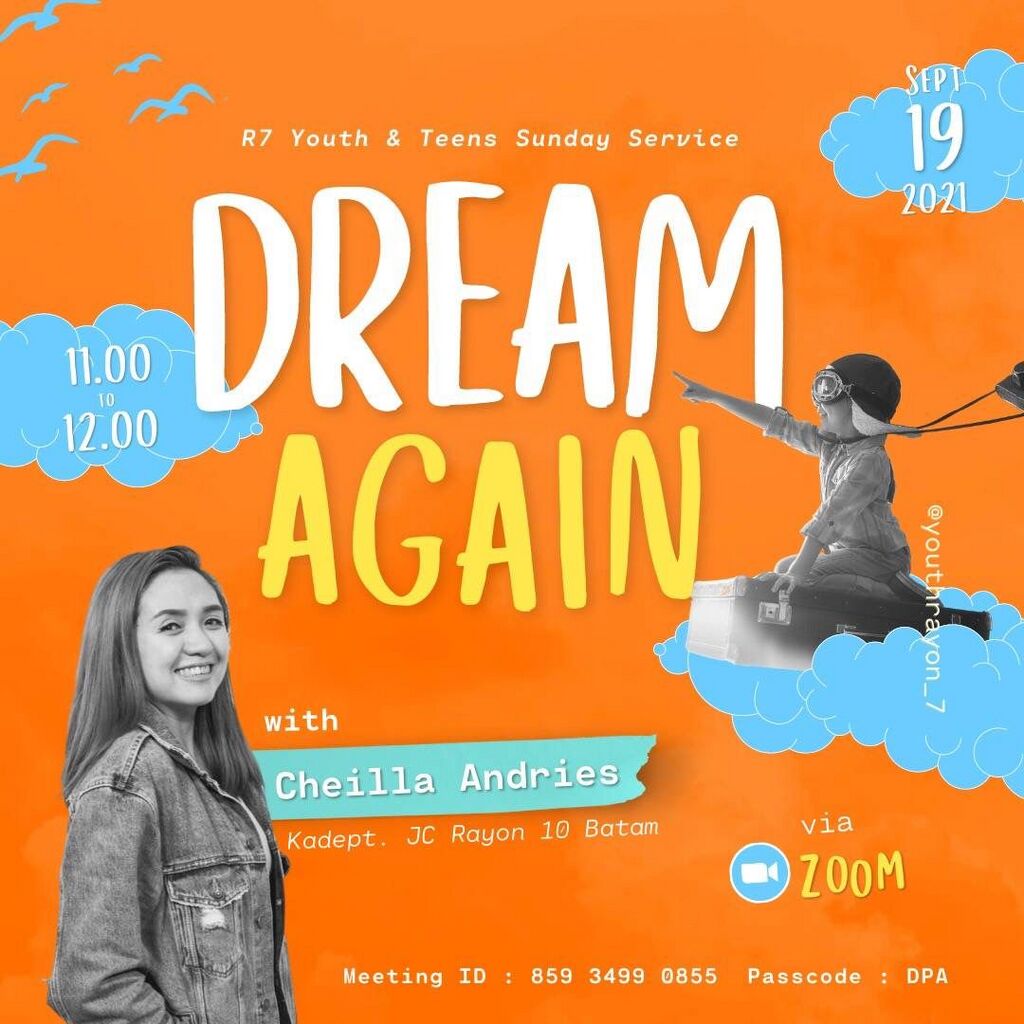 Youth and Teens Sunday Service bersama Cheilla Andries —KaDep JC Rayon 10 Batam diadakan pada hari Selasa, 16 Desember 2025 pukul 11:00-12:00 via Zoom #r7meet.