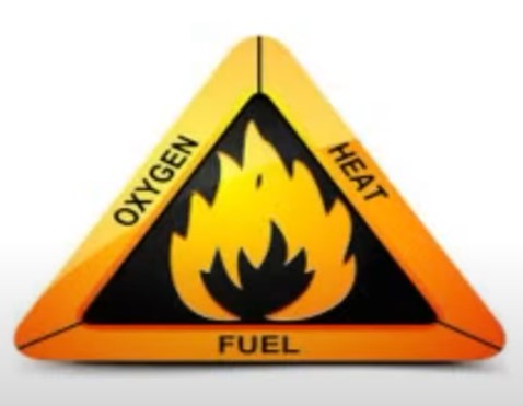 Dalam ilmu fisika ada yang namanya triangle of fire. Kita lihat simbol segitiga ini: