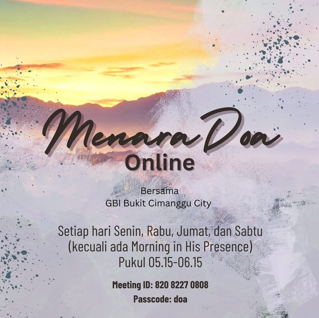Menara Doa Online BCC bersama GBI Bukit Cimanggu City diadakan pada hari Rabu, 21 Juni 2023 pukul 05:15-06:15 via Zoom #doa.